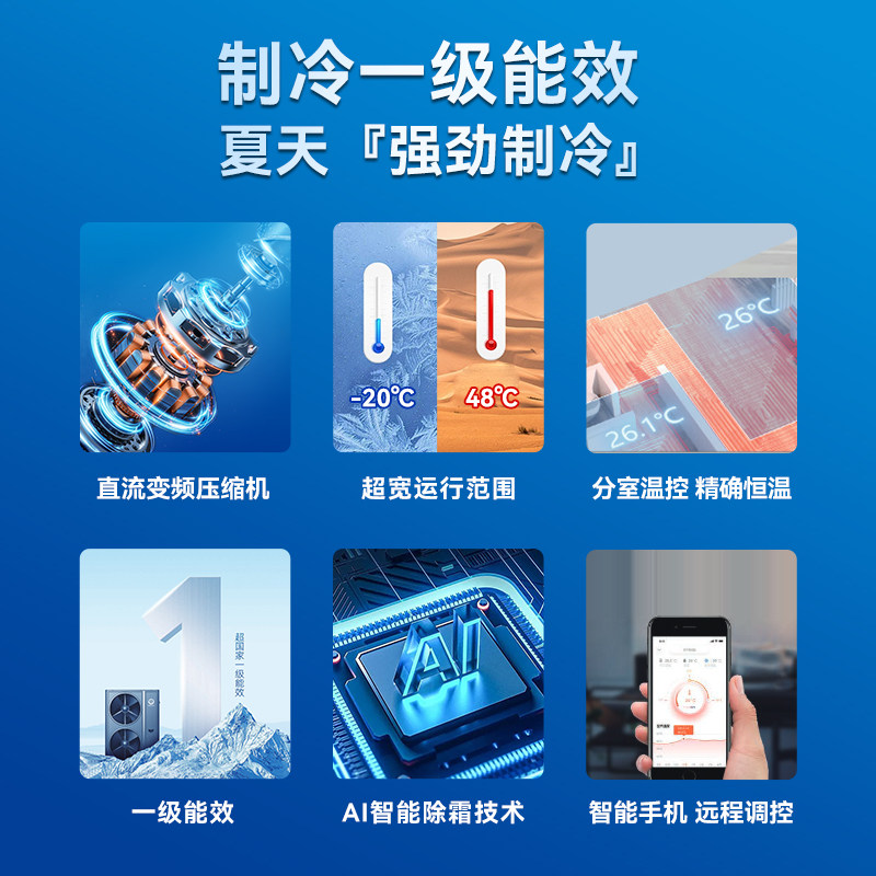 纽恩泰空气能家用手机远程智控直流变频热泵地暖中央空调U+双冠