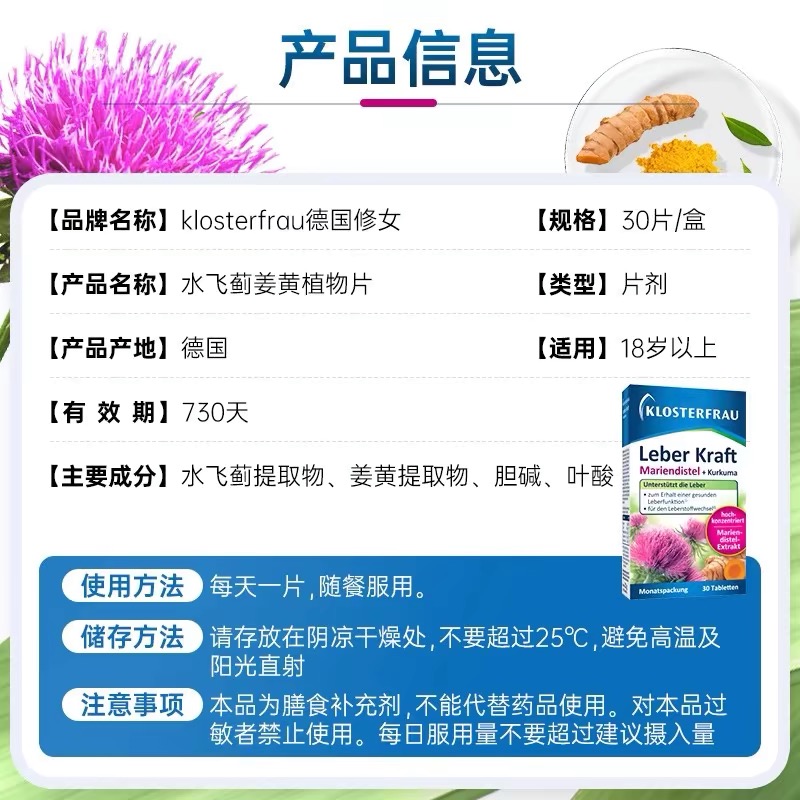 【自营】湖远行推荐 德国修女护肝片水飞蓟胆碱姜黄熬夜奶蓟草3盒