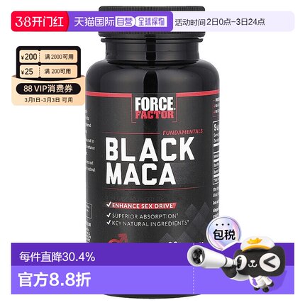 香港直发FORCE FACTOR黑玛卡胶囊优效增加能量和力量60粒