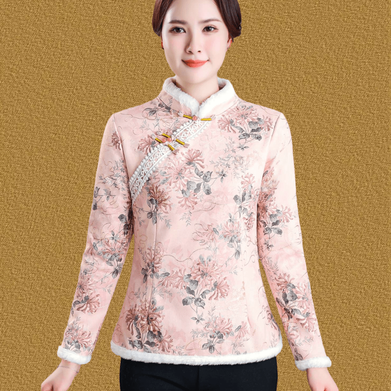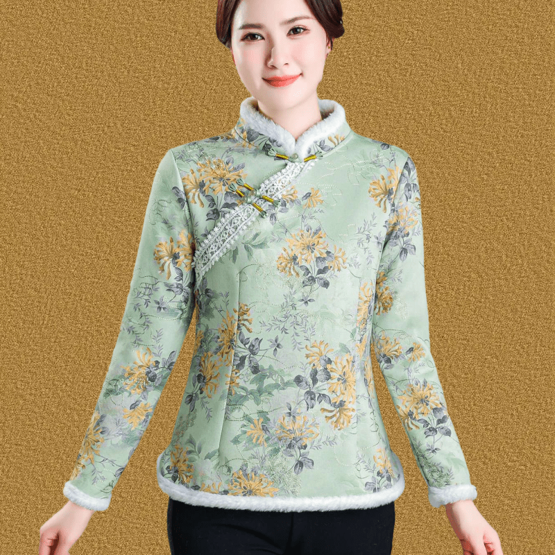 妈妈秋冬装加绒打底小衫保暖旗袍上衣中老年女冬装民族风复古棉衣