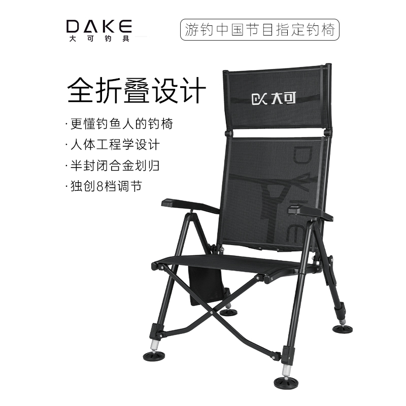 大可DAKE竖折叠钓鱼椅全折叠大钓椅欧式钓椅便携躺椅全地形钓鱼椅