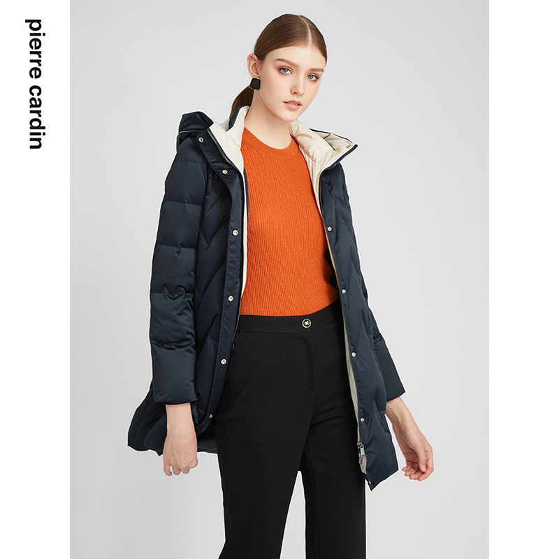 皮尔卡丹女装通勤淑女连帽羽绒服