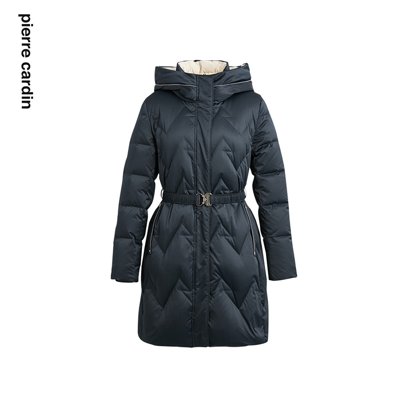 商场同款皮尔卡丹女装时尚保暖连帽简约收腰羽绒服