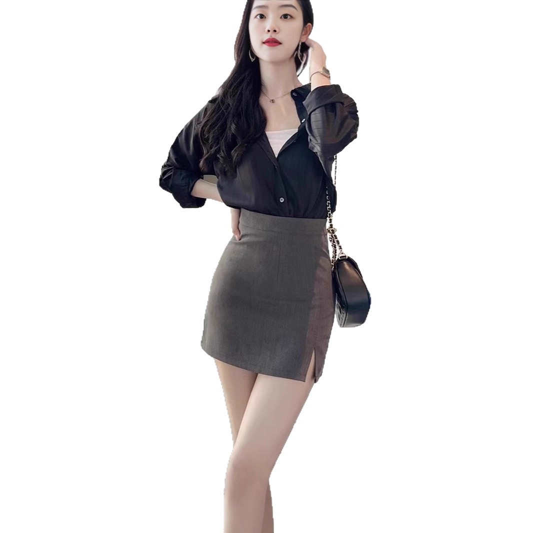 xs黑色半身裙女秋2025薄款高腰紧身西装短裙职业显瘦一步裙包臀裙