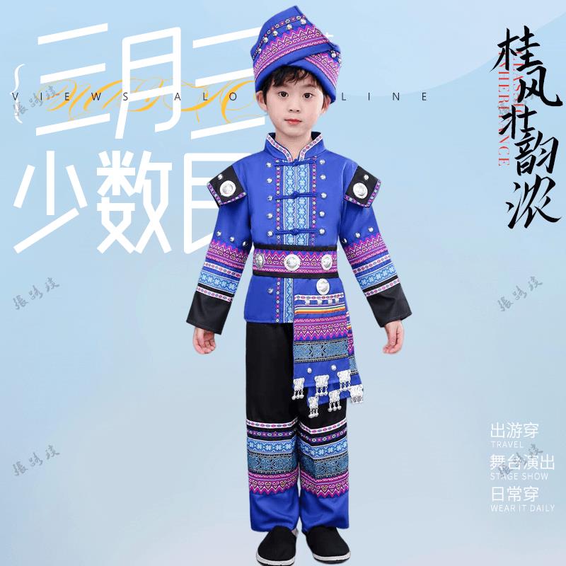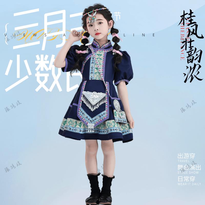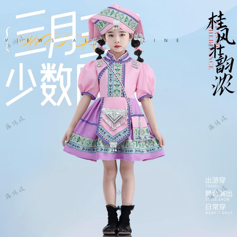 新款少数民族毛南族演出服装表演服饰儿童舞蹈合唱男女童短裙套装