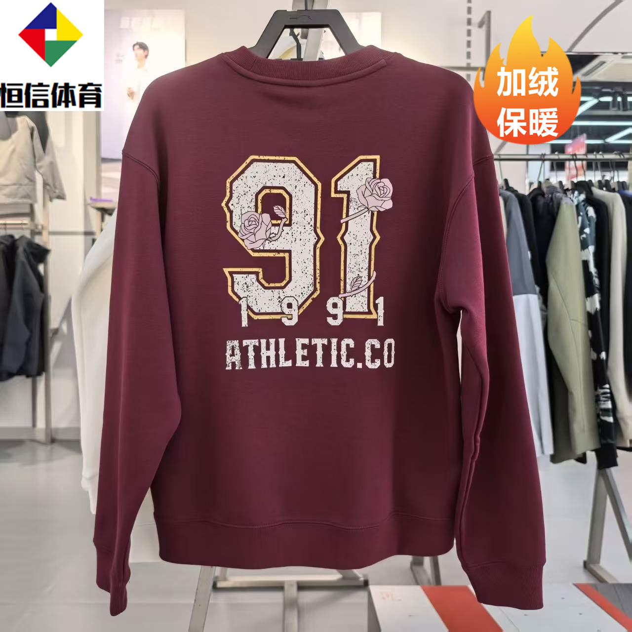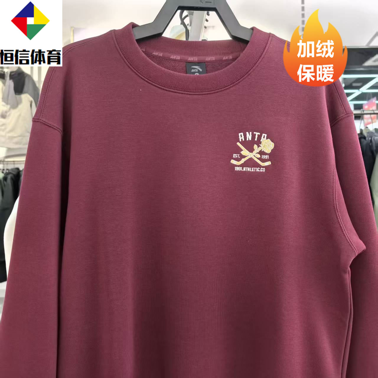 安踏套头卫衣女冬季新款长袖圆领休闲百搭加绒运动上衣162548704N