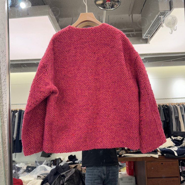 欧洲站2025早秋新款时尚圆领长袖纯色单排扣宽松毛呢外套女款欧货