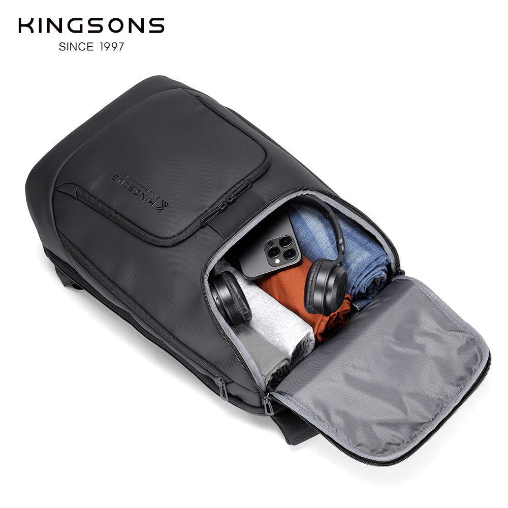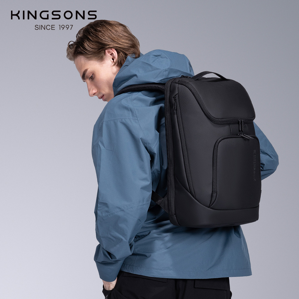 金圣斯男包多层收纳商务简约双肩包便携独立电脑隔层防泼水背包