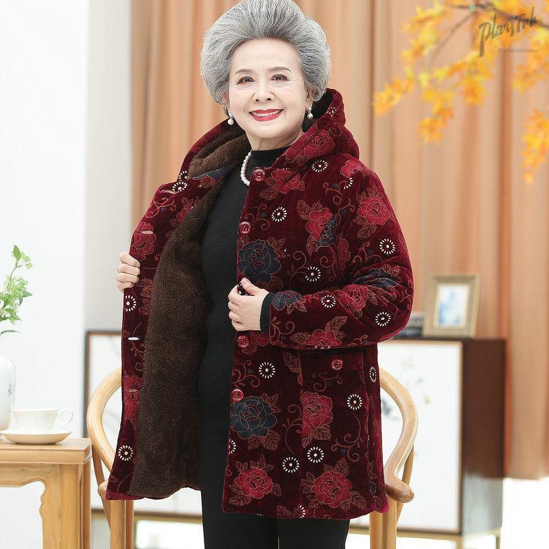 奶奶装棉服中长款6070岁80老年人冬装棉衣女老太太加厚连帽棉袄