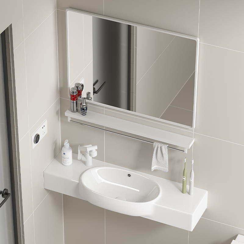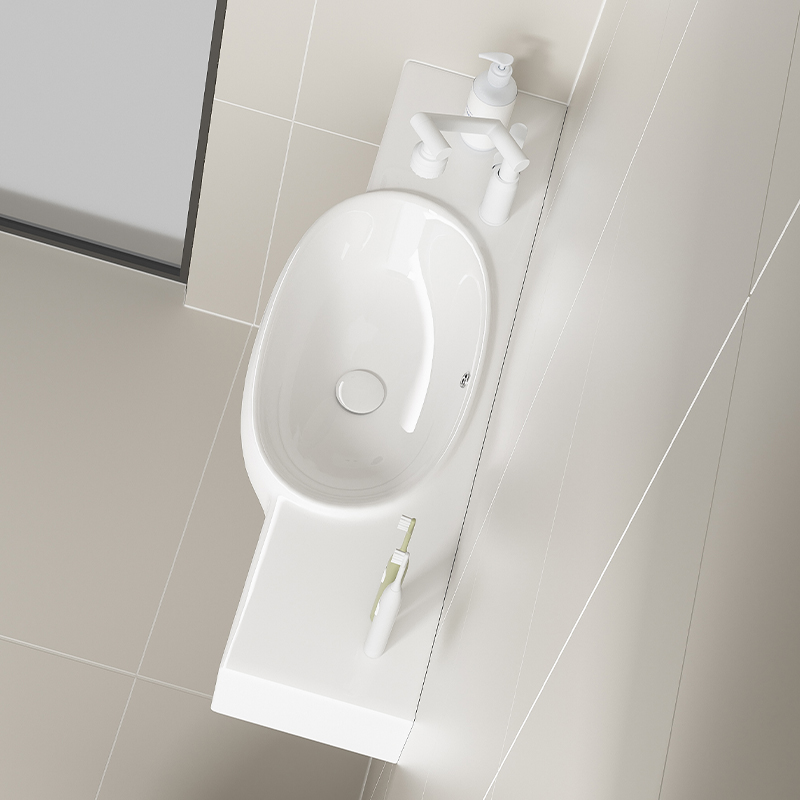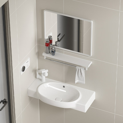 纯白挂墙式一体陶瓷洗脸盆小户型卫生间超窄加长墙角挂壁式洗手盆