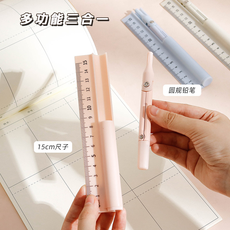尼家文具多功能圆规直尺铅笔三合一小学生初中生专用考试学习文具