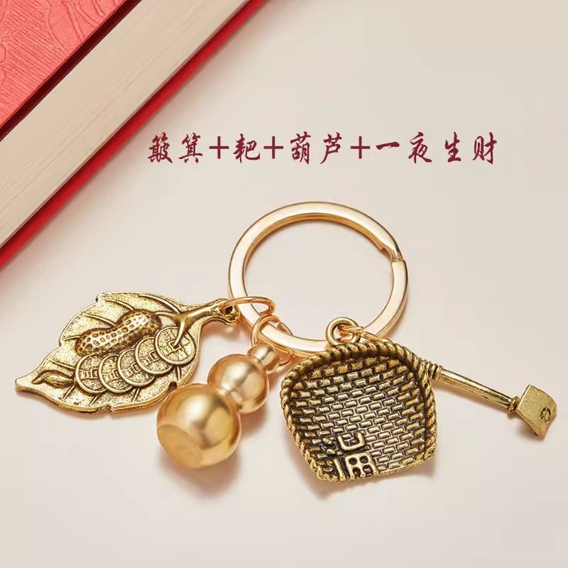 纯黄铜钥匙扣纯铜手工小葫芦实心空心高档汽车钥匙链随身挂件饰品