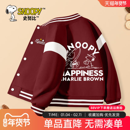 史努比男童外套春秋2025新款美式棒球服男孩薄款夹克儿童开衫上衣