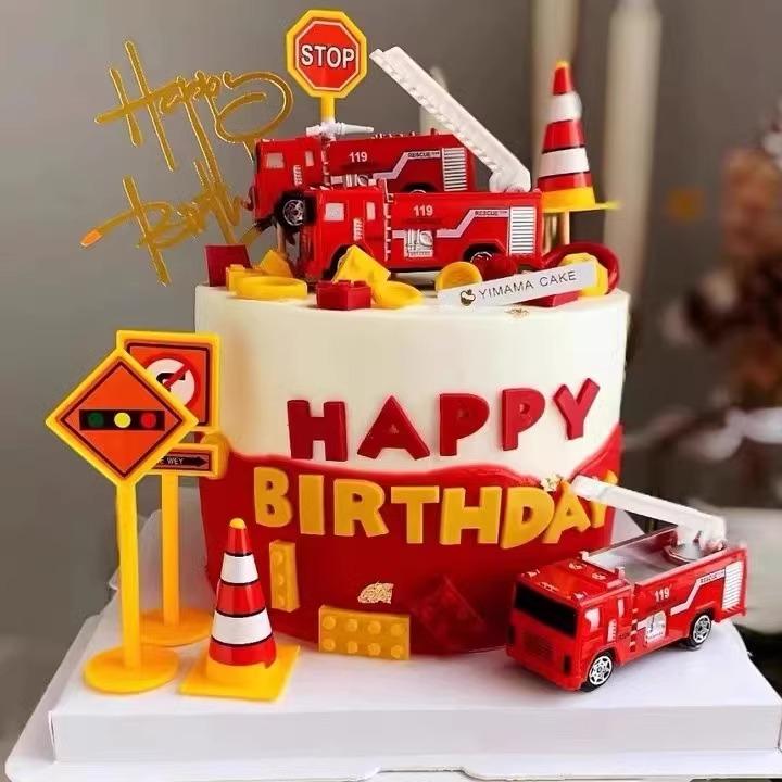 消防员蛋糕装饰摆件消防车玩具火警灭火英雄儿童男孩生日烘焙插件
