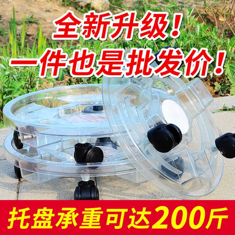 加厚移动花盆托盘万向轮圆形花盆底座带滚轮塑料花托底盘接水托盘