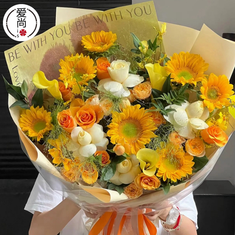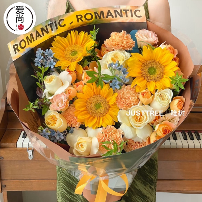 毕业季向日葵花束黄色油画纸鲜花包装纸材料艺术牛皮背景纸包花纸