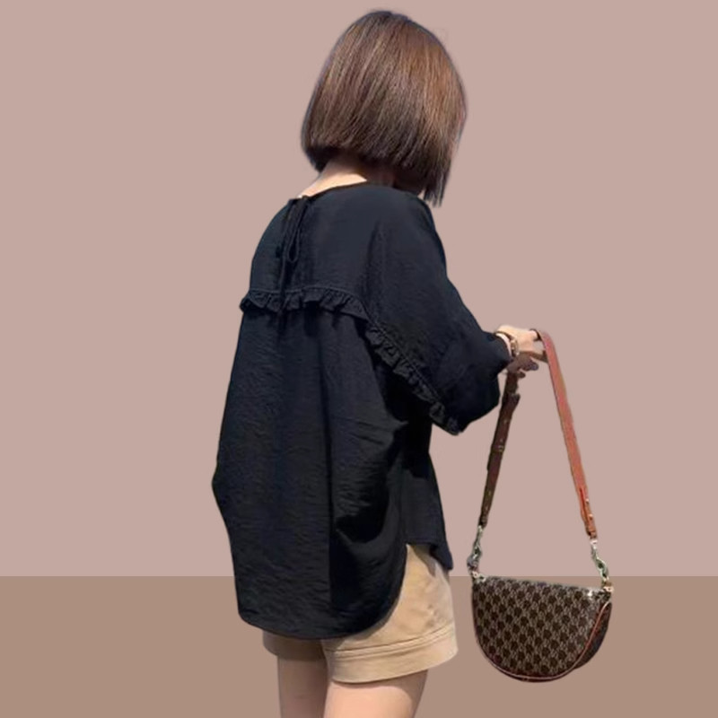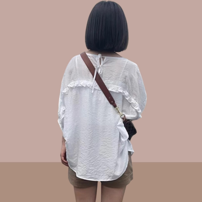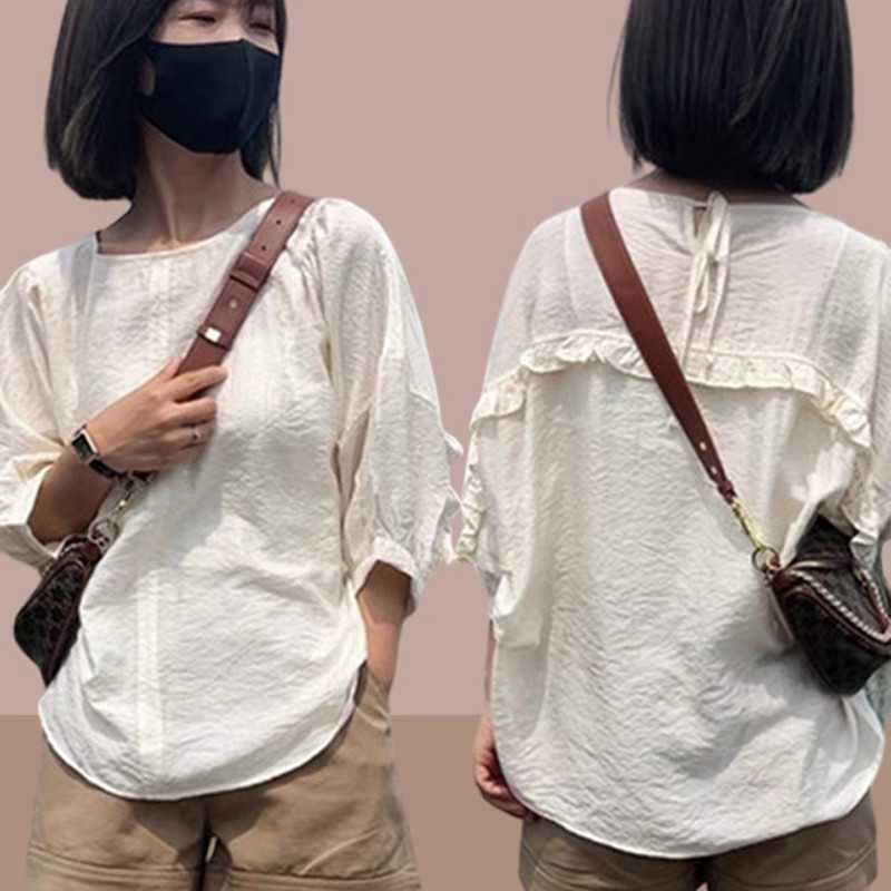 女士短袖衬衫2026夏季新款蝙蝠五分袖雪纺衫胖mm遮肉显瘦爆款上衣