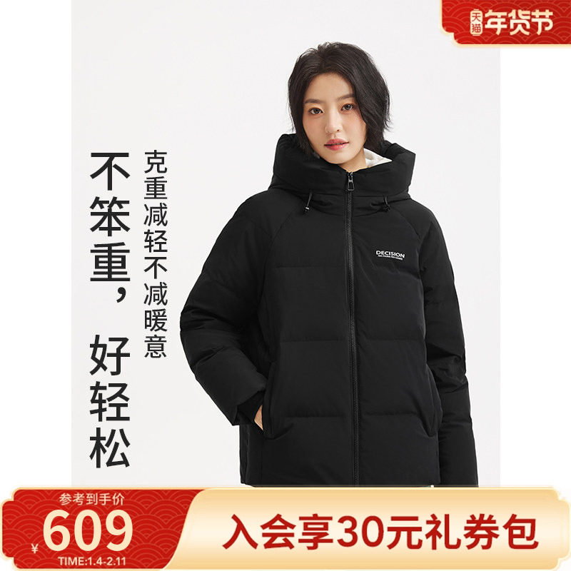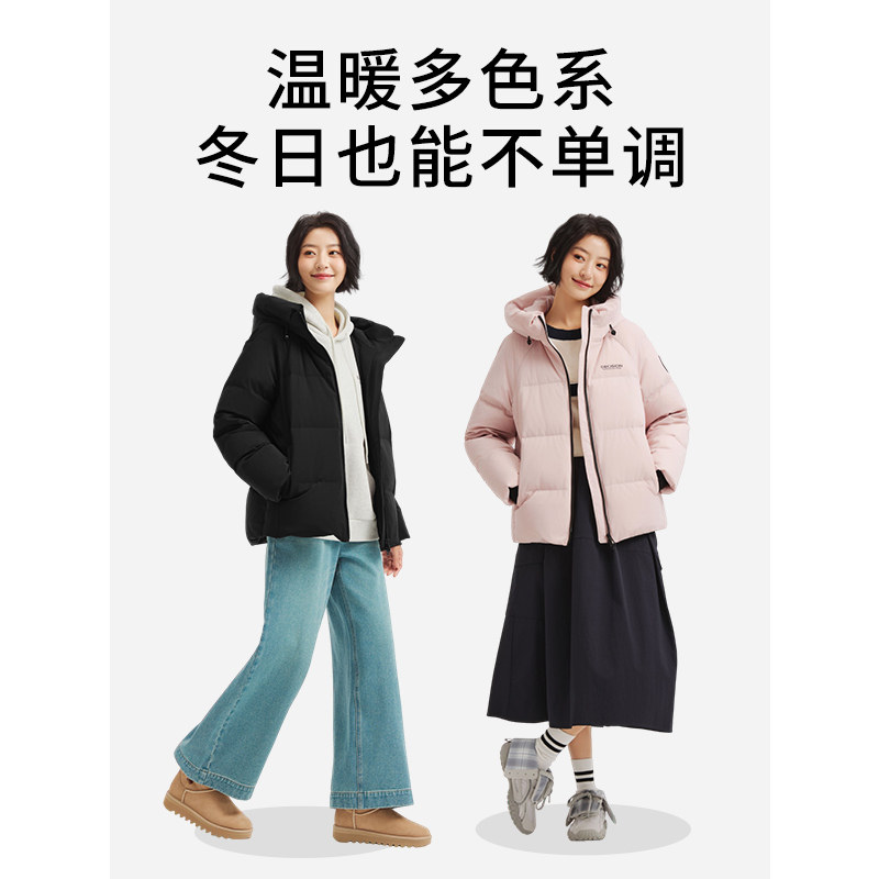 热风女士羽绒服2025年冬季新款中长羽绒服连帽运动风羽绒服外套