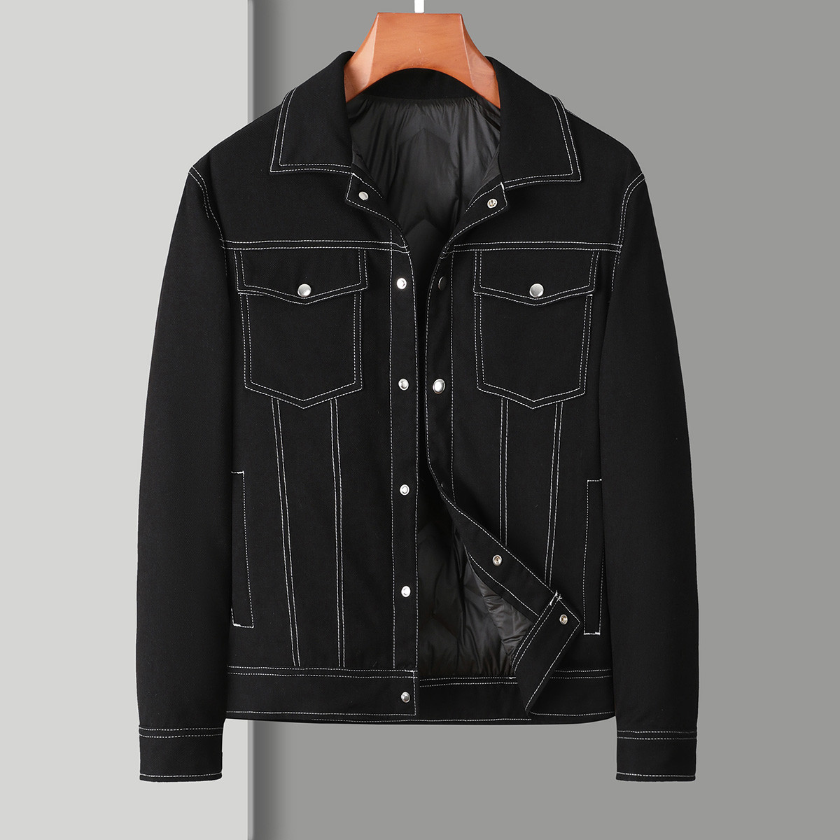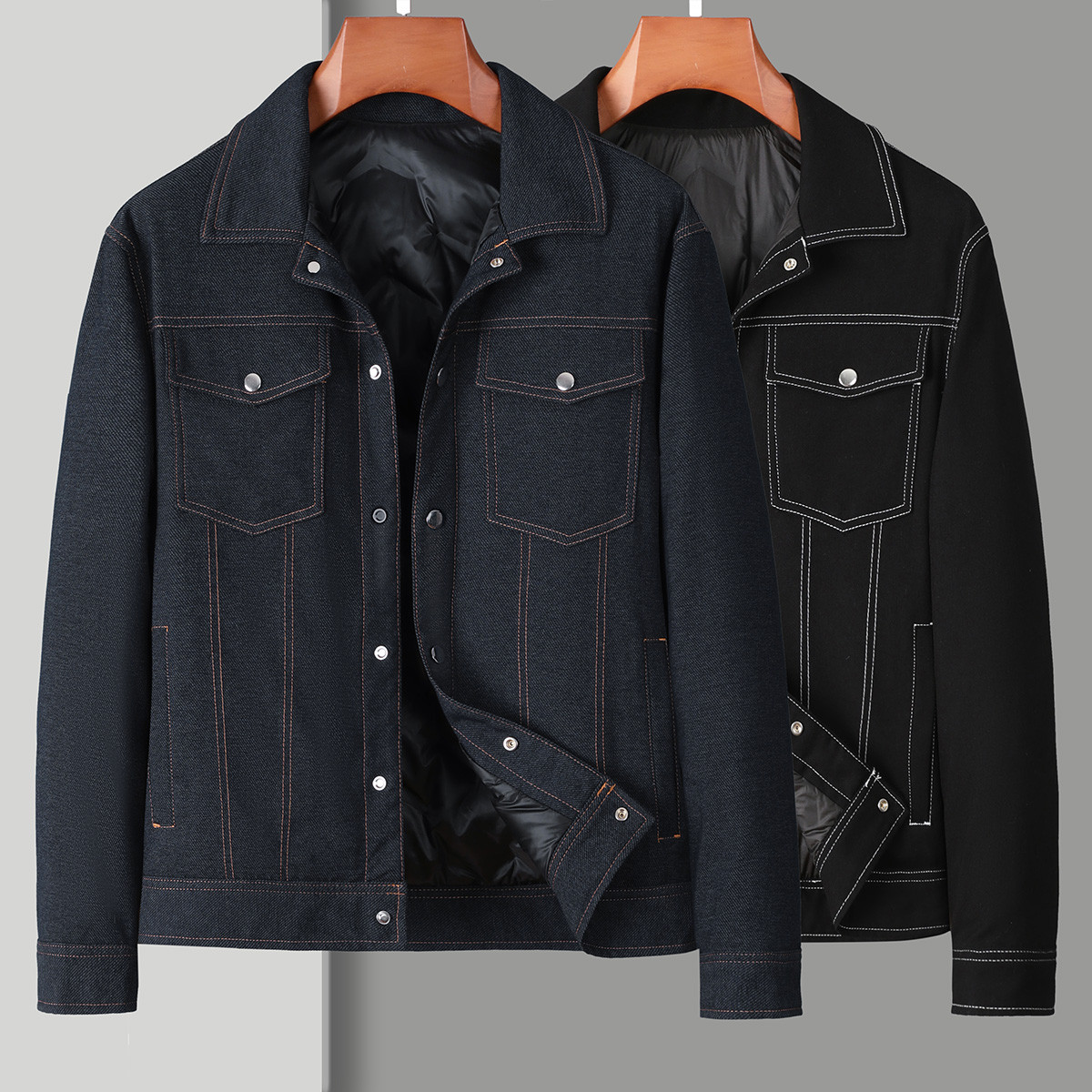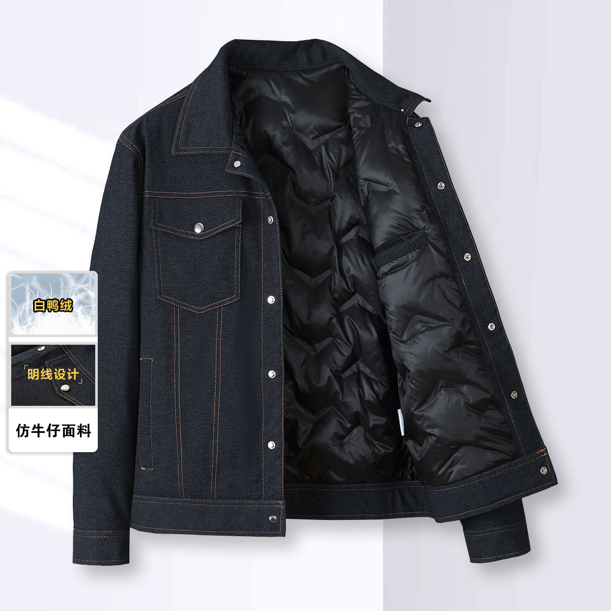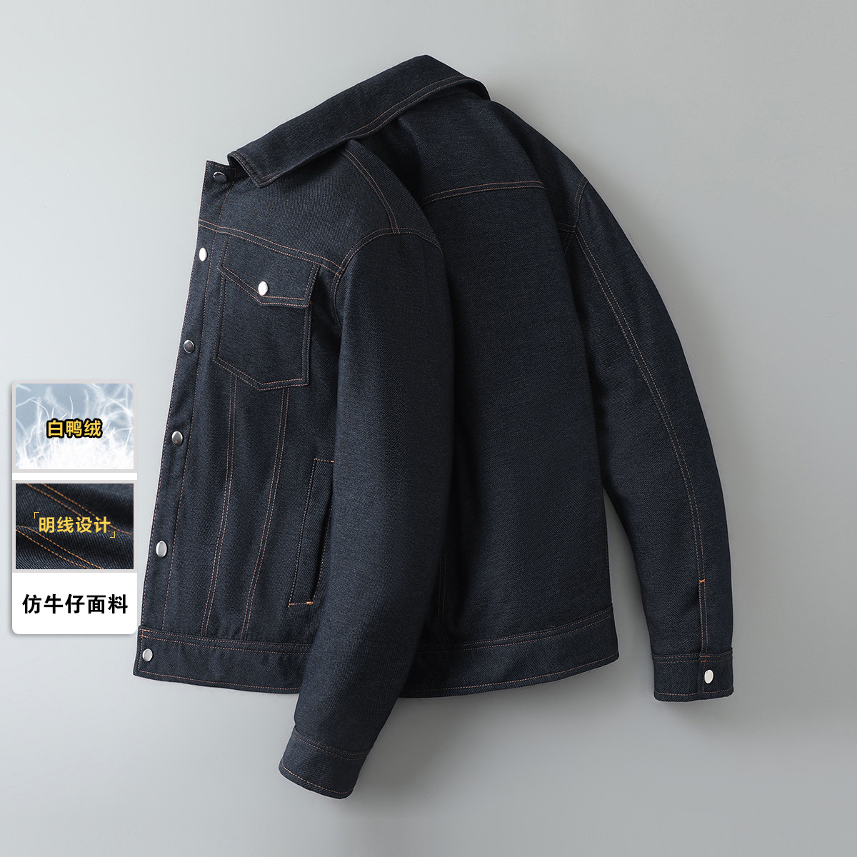 罗蒙秋冬男士仿牛仔羽绒服工装短款翻领明线设计夹克潮流加厚外套