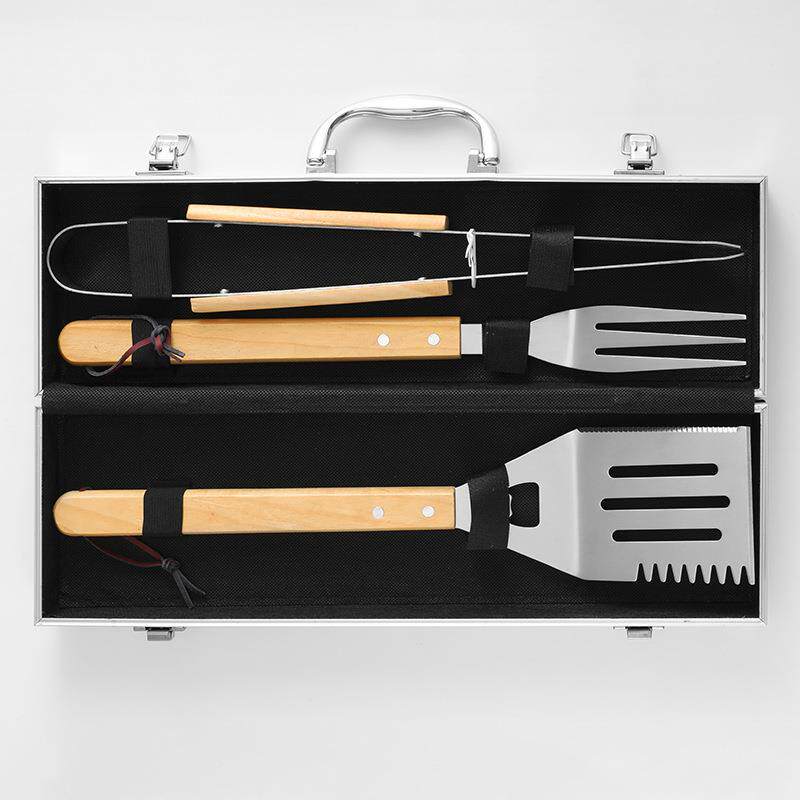 橡胶木手柄烧烤工具套装竹盒5件套户外烧烤用具便携烤具