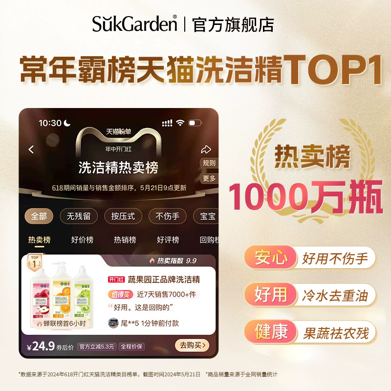 蔬果园洗洁精食品家用级果蔬清洗剂大小瓶装洗碗液正品官方旗舰店