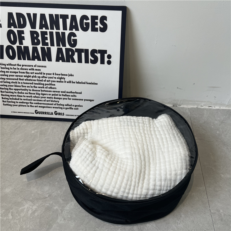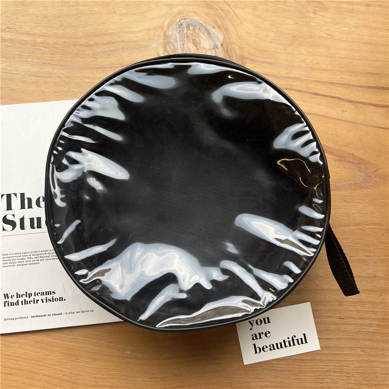 黑色牛津布圆饼包透明pvc便携拉链手拎包化妆包洗漱包旅行收纳包