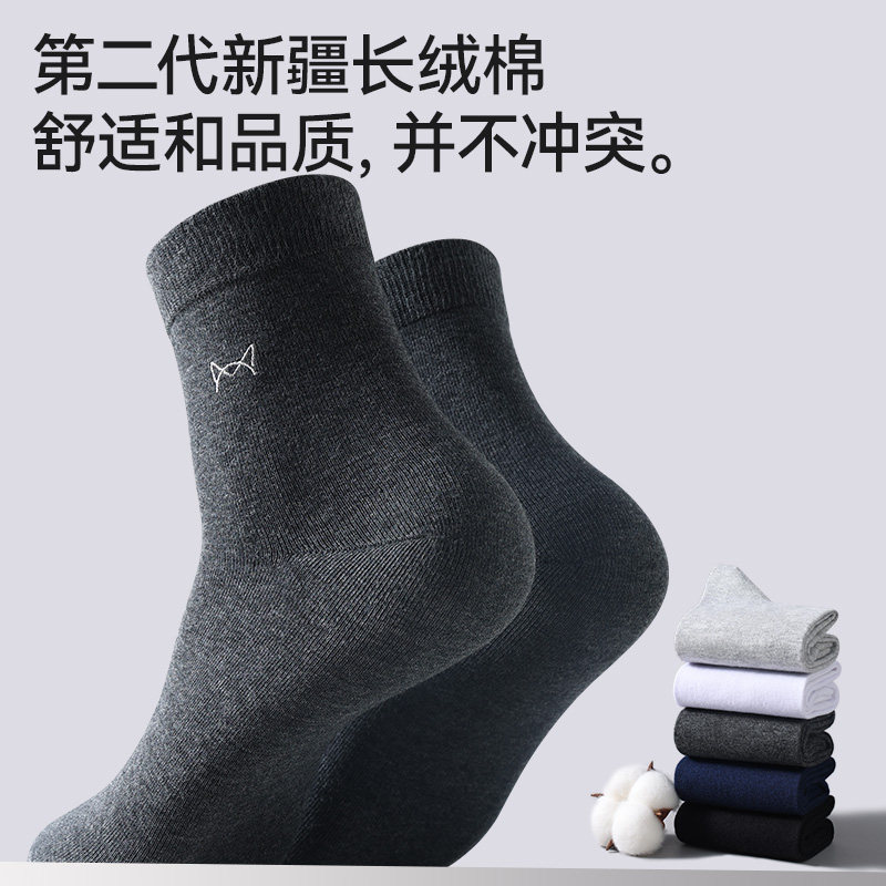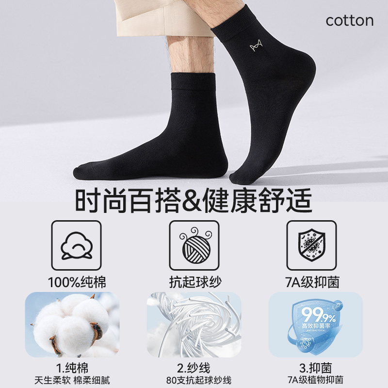 猫人袜子男士纯棉防臭吸汗透气男式秋冬季全棉商务黑色男款中筒袜