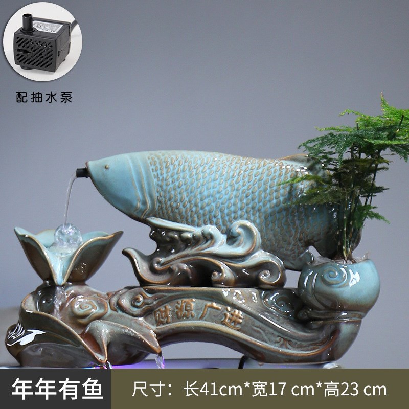 招财鱼缸流水摆件陶瓷自动循环水客厅玄关办公室桌面创意造景装饰
