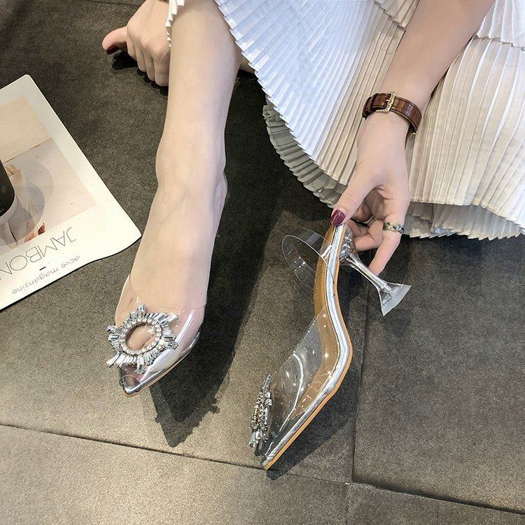大码34-43码伪娘高跟鞋细跟水钻透明水晶凉鞋日常女装大佬cos单鞋