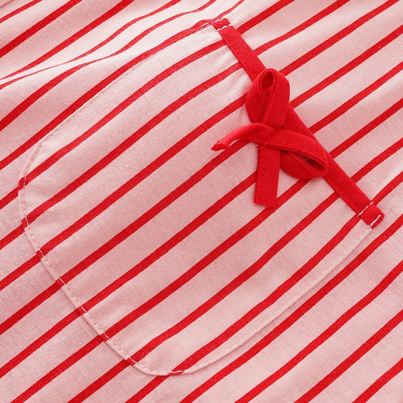 带胸垫短袖长裤睡裙女夏季纯棉孕妇大码条纹开衫家居服两件套装