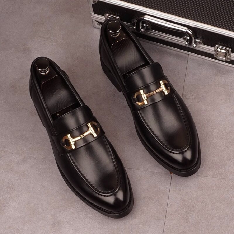 男鞋子夏季透气2025新款鳄鱼纹商务正装皮鞋男款一脚蹬软底豆豆鞋