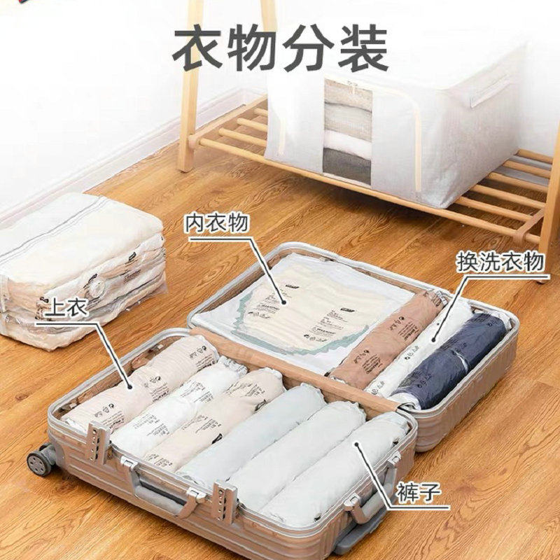 7件套太力旅行手卷真空压缩袋免抽旅游神器衣物收纳袋行李箱专用