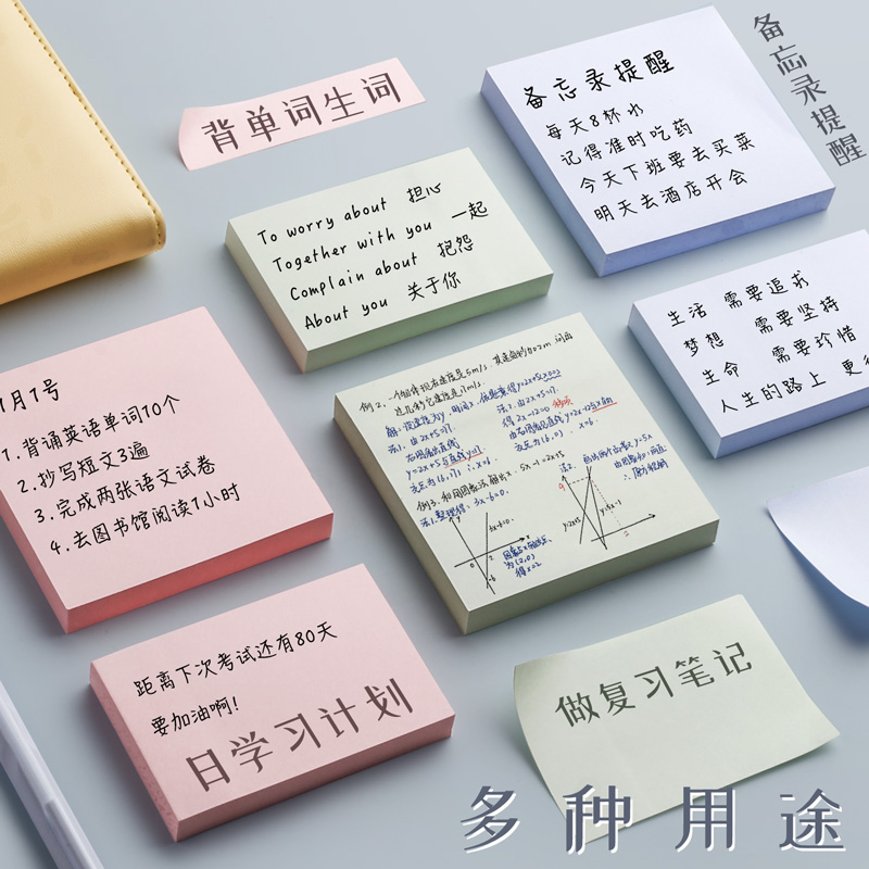 莫兰迪便利贴学生用便签纸小条标记粘性强纯色彩色大号便条网自粘