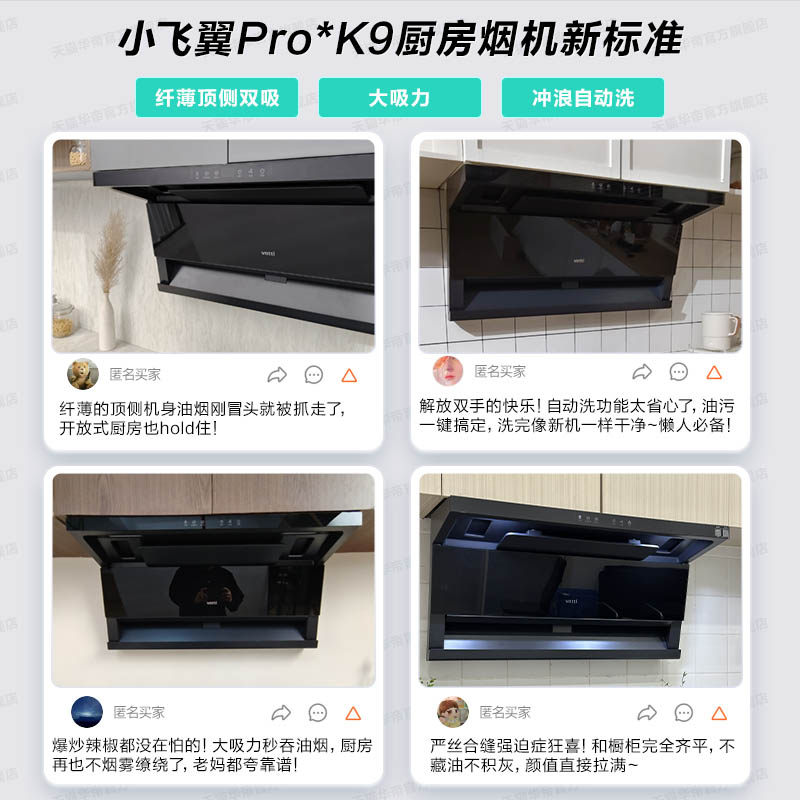 [小飞翼Pro]华帝油烟机K9顶侧双吸抽油烟机家用厨房变频官方旗舰