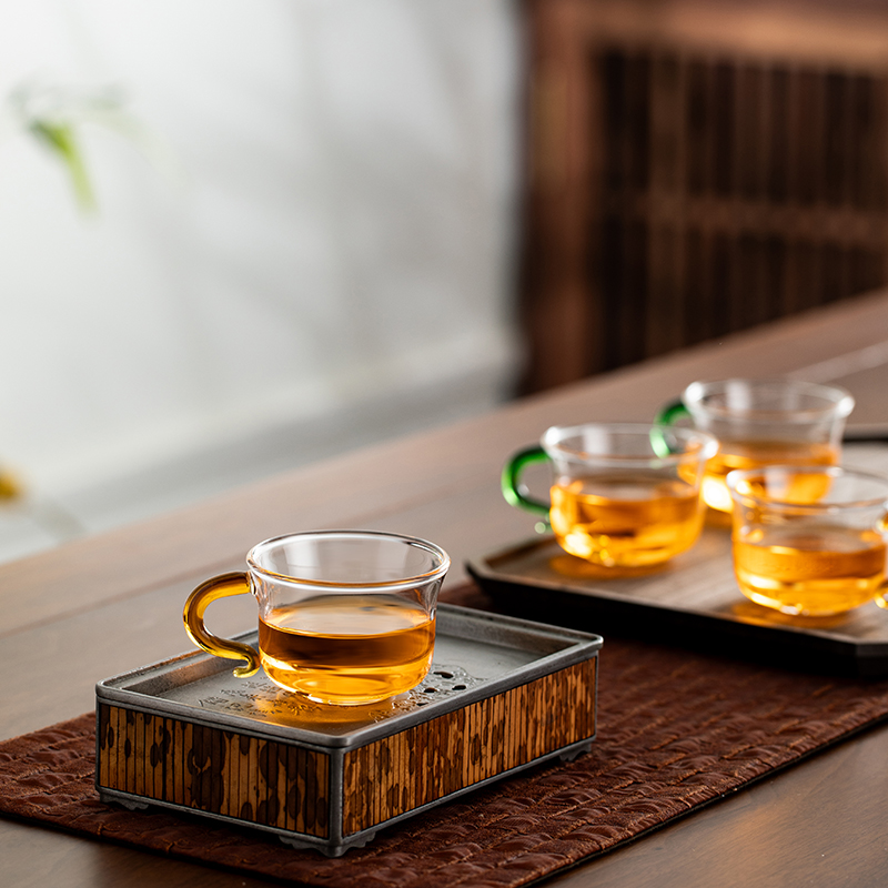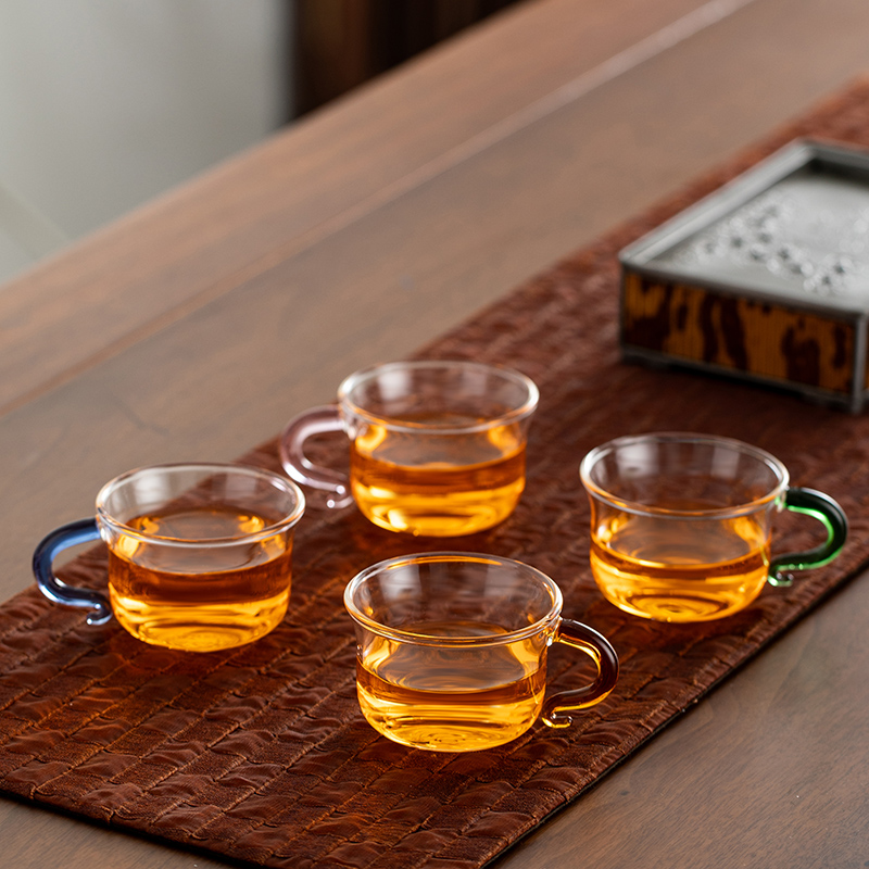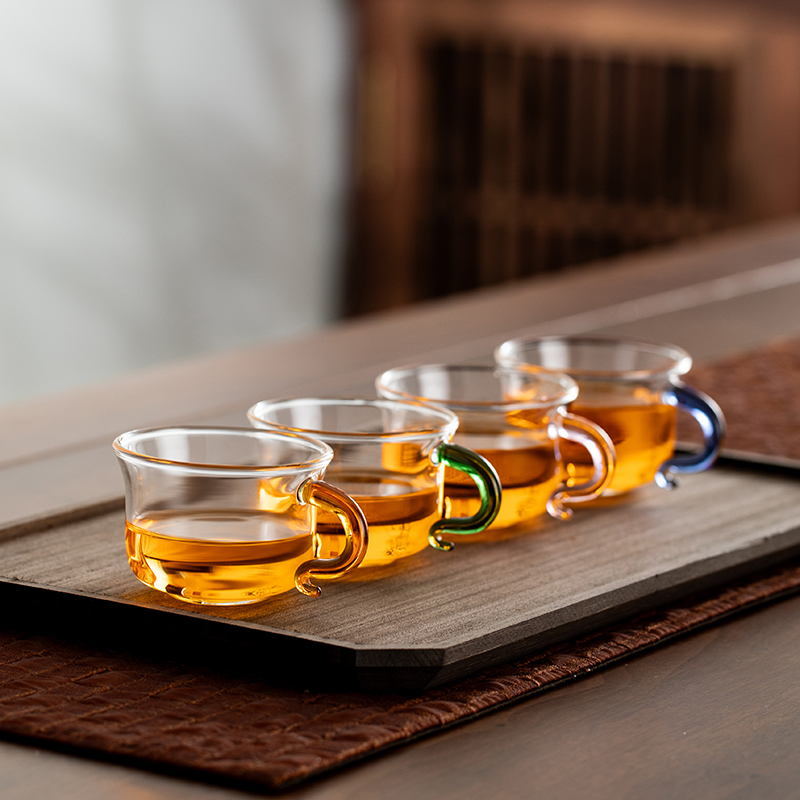 品一恒耐热透明玻璃小茶杯品茗杯带把玻璃杯功夫茶主人杯小杯子