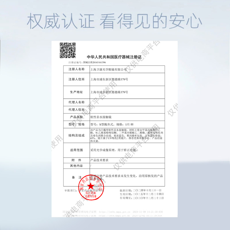 卫康润视半年抛1片隐形眼镜防紫外线自在清晰舒适透氧官方旗舰店