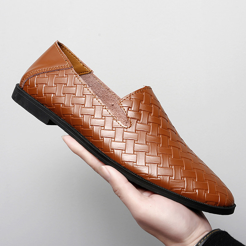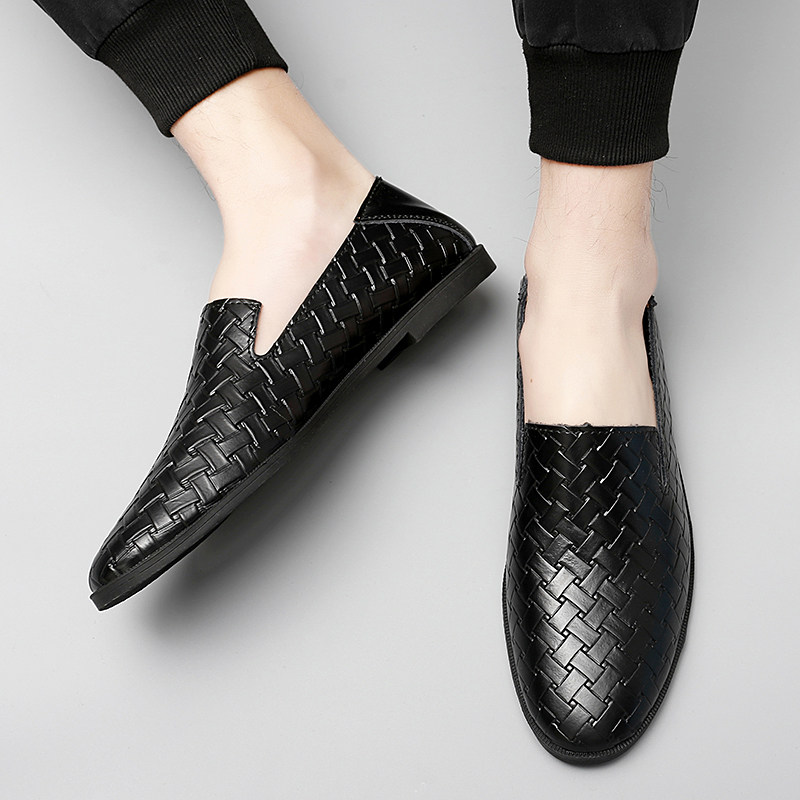 尖头休闲男皮鞋2025新款轻便软低真皮小码时尚潮流一脚蹬豆豆鞋男