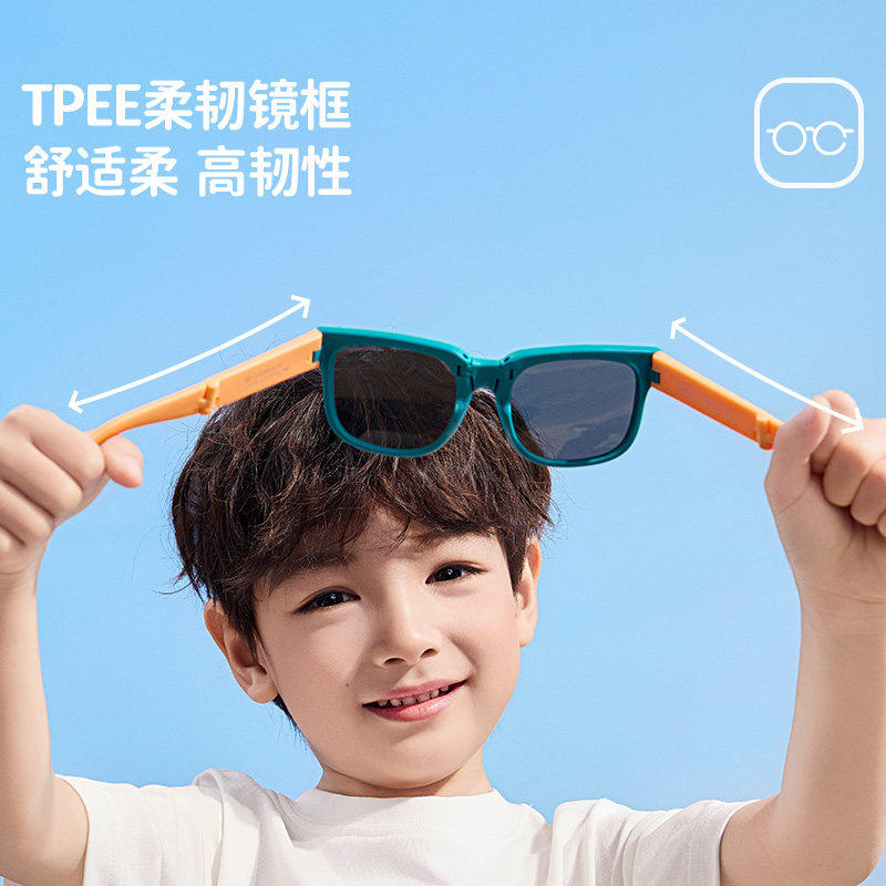 儿童太阳镜男童女孩偏光防紫外线海边防晒眼镜时尚潮宝宝折叠墨镜