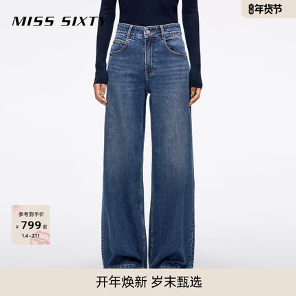 Miss Sixty2025秋季新款牛仔裤女复古洗水微弹宽松休闲垂感阔腿裤