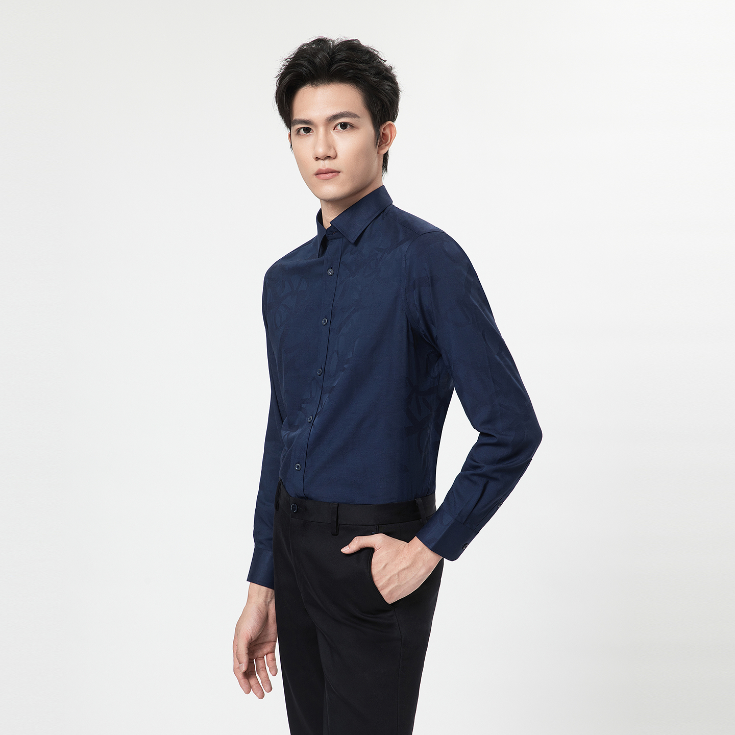 【商场同款】金利来春夏新款男士休闲衬衫精细提花休闲男长袖衬衣