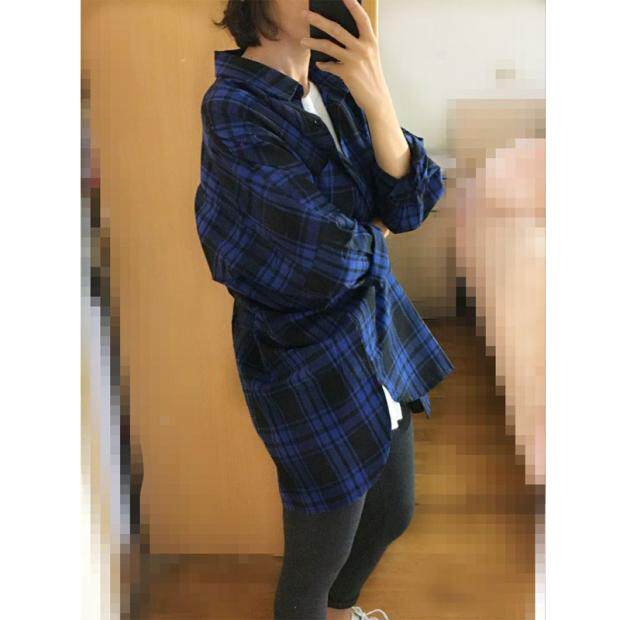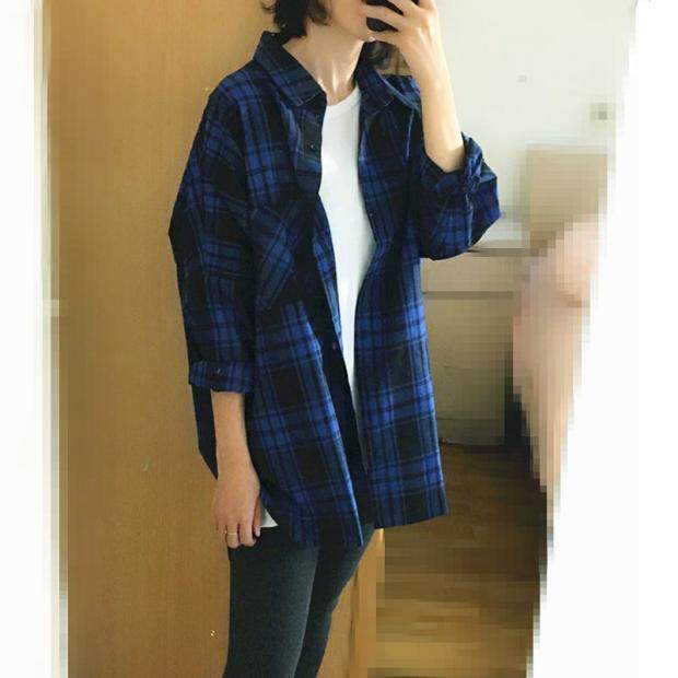 断码特价大码中长款格子衬衫女长袖衬衣宽松bf百搭韩版学院风外套