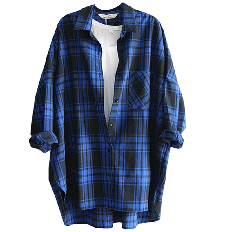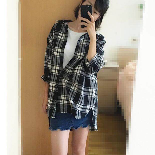 特价大码中长款格子bf宽松bf衬衫
