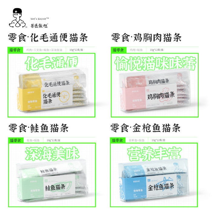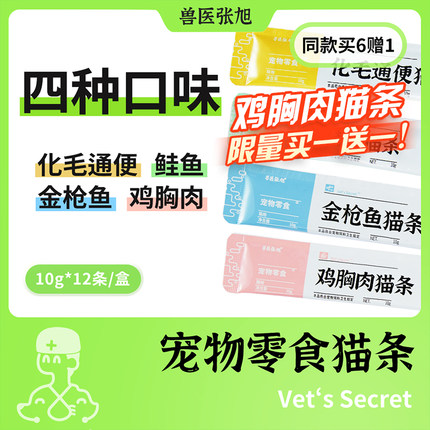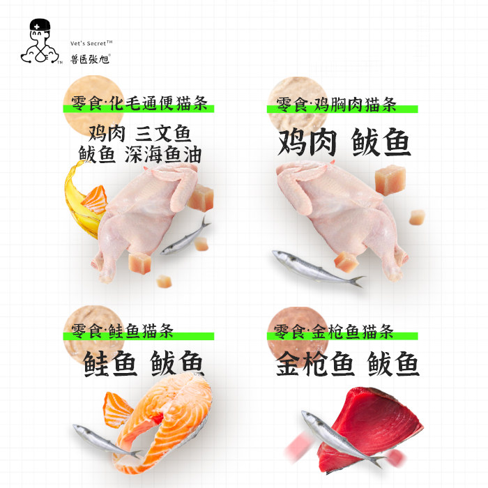 兽医张旭猫条化毛鸡肉鲑鱼金枪鱼猫咪纯肉补水成猫幼猫零食猫条