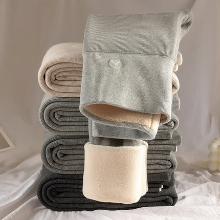 螺纹羊羔绒加绒加厚打底裤纯棉女