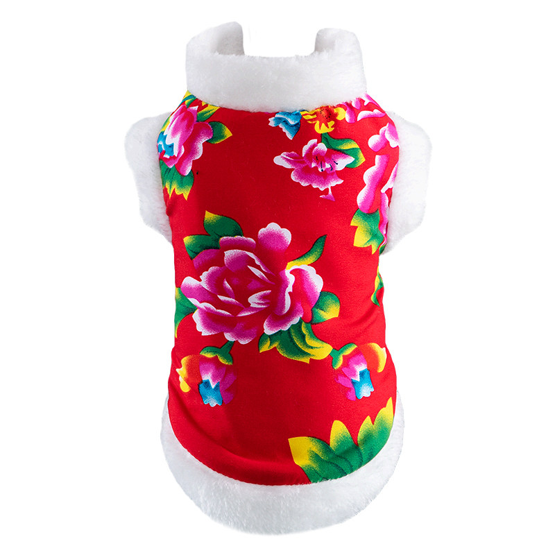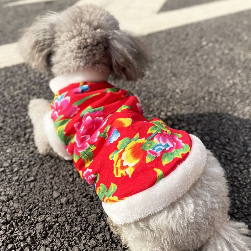 狗狗衣服东北大花新年棉衣泰迪比熊博美猫咪小型犬秋冬装加厚过年