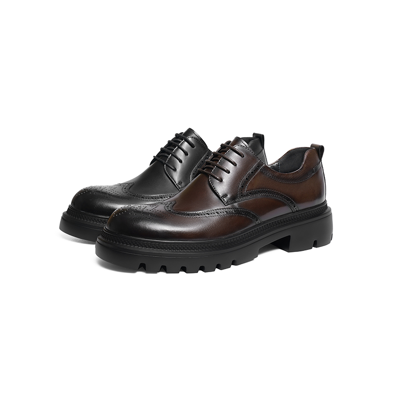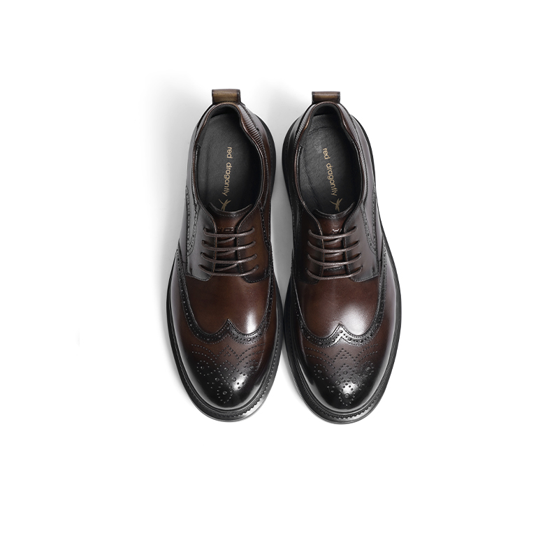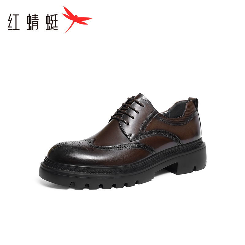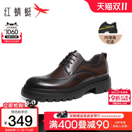 红蜻蜓男鞋秋季新款厚底增高正装皮鞋男雕花布洛克结婚新郎鞋男士
