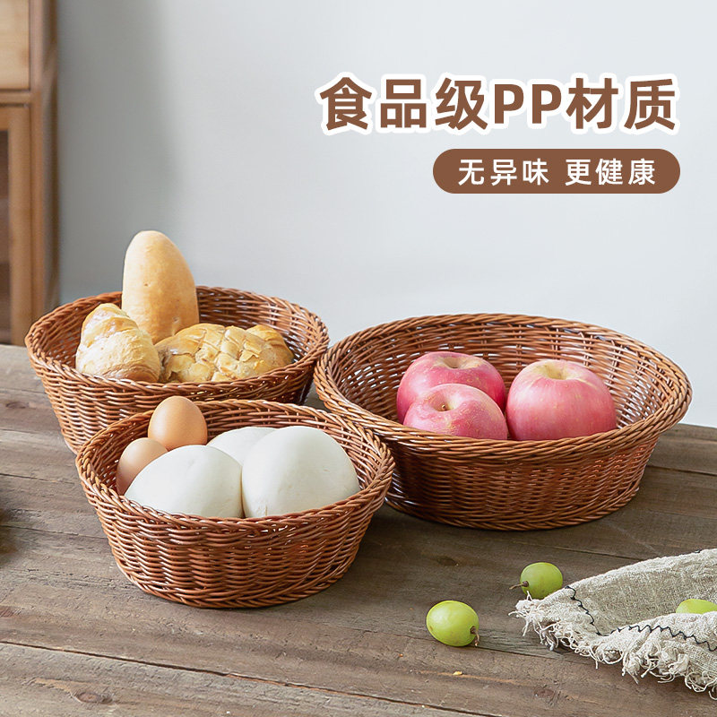 食品级馒头筐子家用放馍筐专用鸡蛋水果仿藤编圆形收纳筐食物坚果