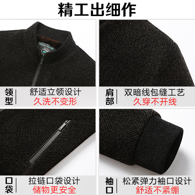 啄木鸟中年男士外套夹克衫加绒加厚款秋冬季中老年人棉衣服爸爸装