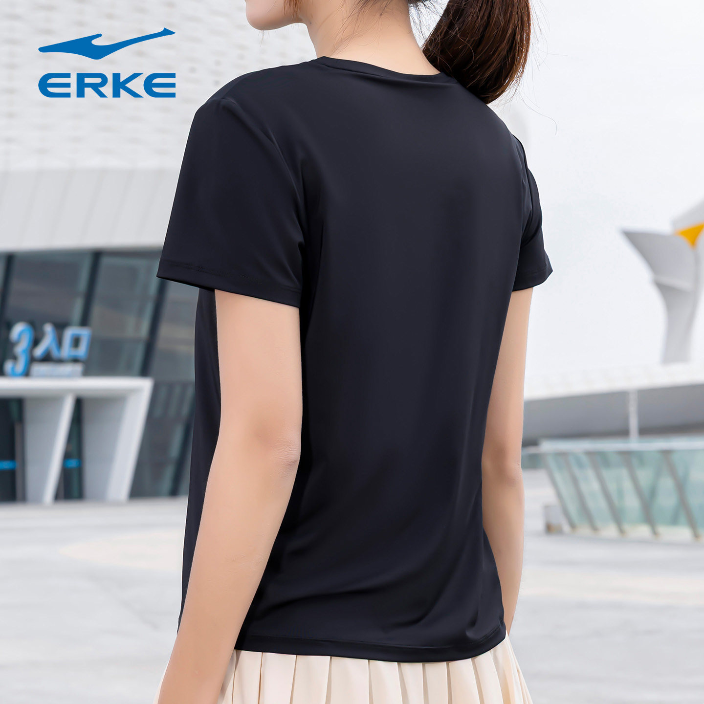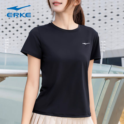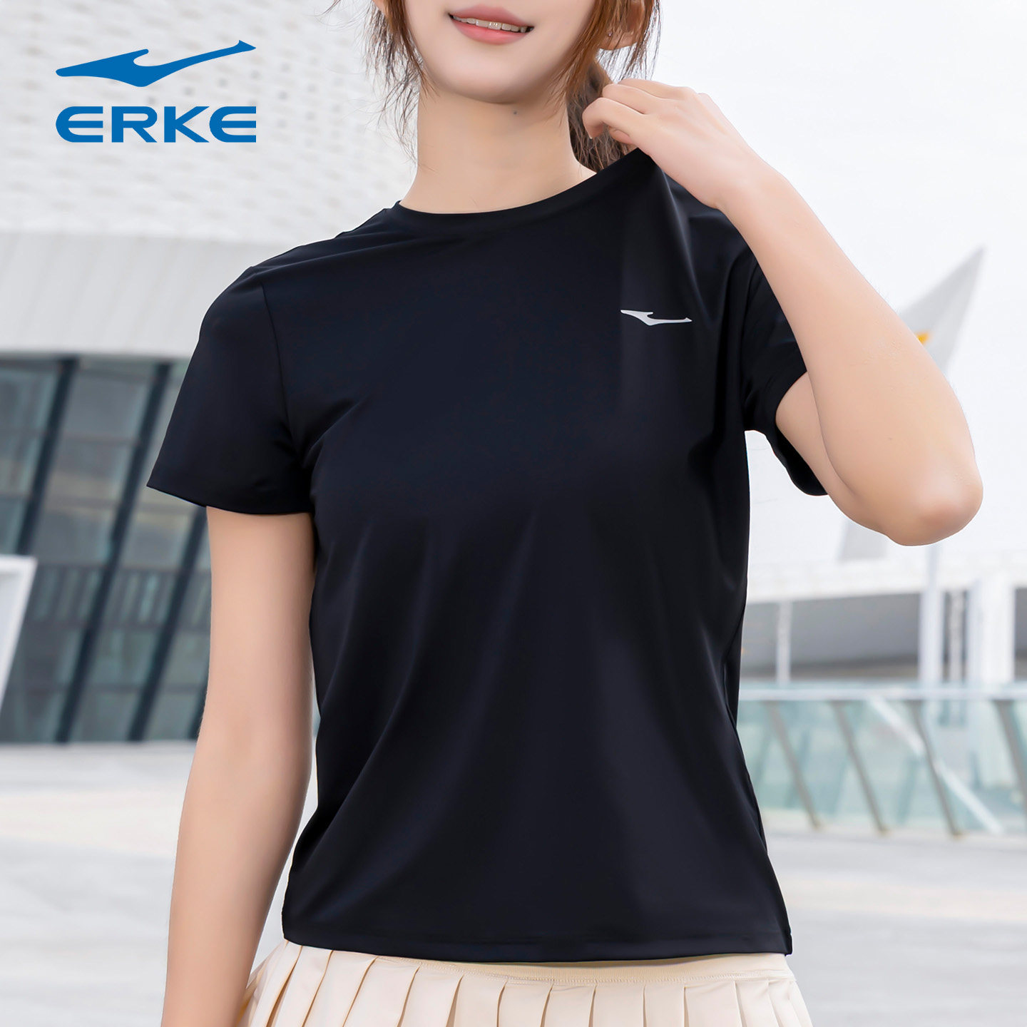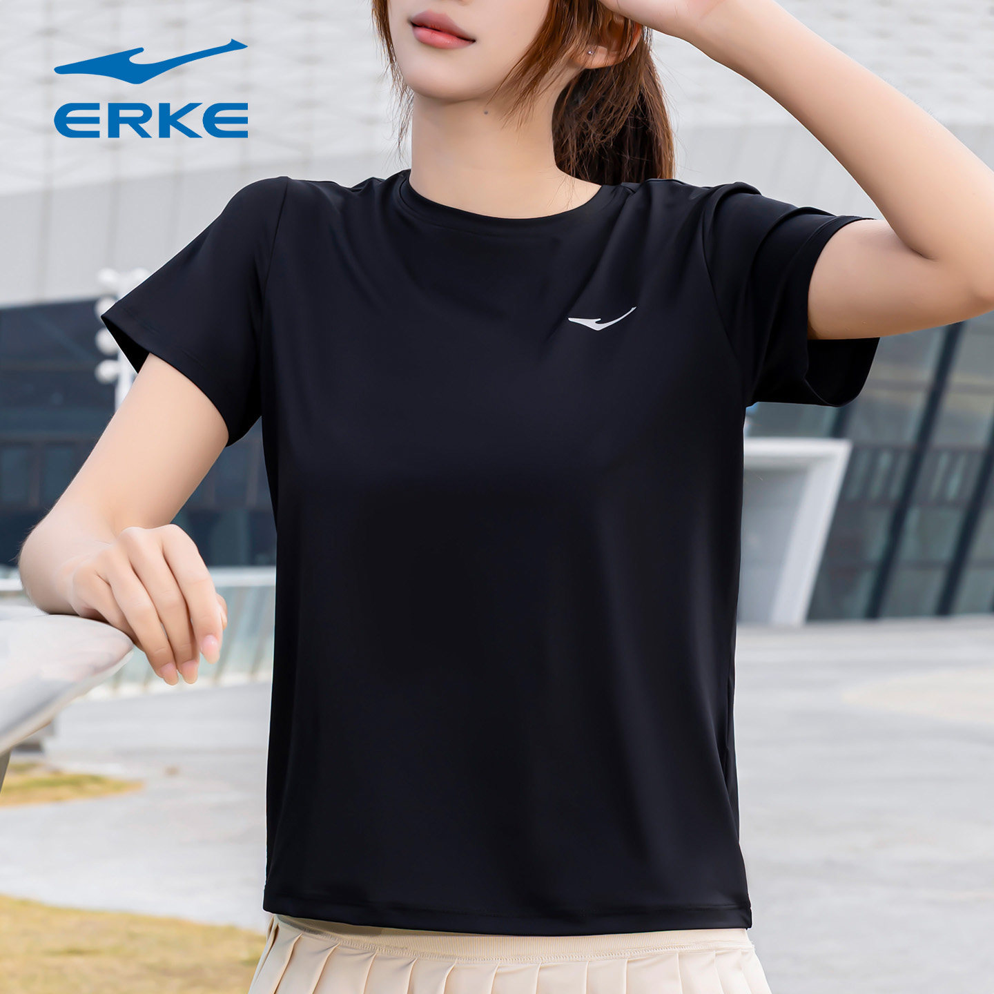鸿星尔克女款速干运动T恤黑色透气健身服官方正品冰丝短袖上衣女