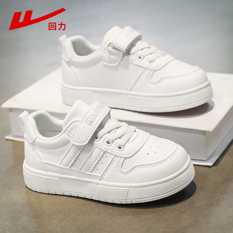 回力童鞋男童板鞋春秋2025新款皮面防水女童运动鞋百搭儿童小白鞋